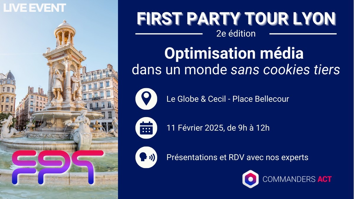 Depuis juin 2024, le First Party Tour a lieu 3 fois par an et met à l’honneur les sujets les plus critiques du moment. Il vous accompagne dans la compréhension d’un univers digital en transformation profonde, un univers où la fin des cookies tiers modifie les habitudes prises depuis plus de 20 ans.