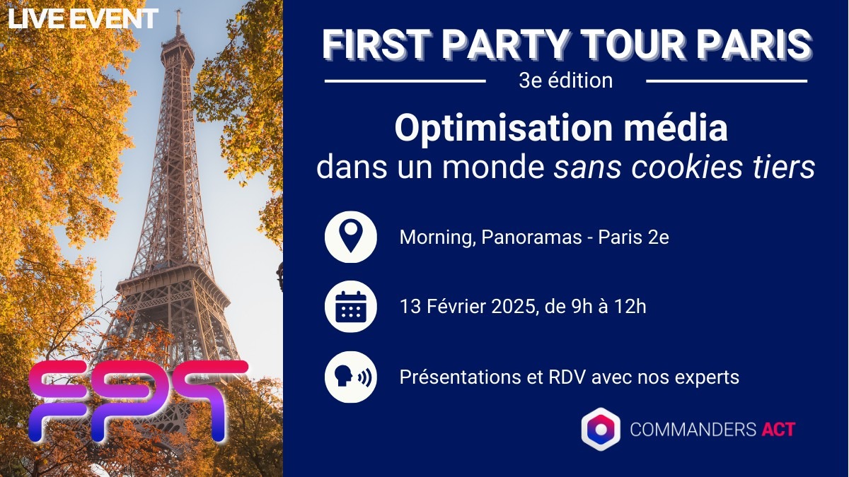 Depuis juin 2024, le First Party Tour a lieu 3 fois par an et met à l’honneur les sujets les plus critiques du moment. Il vous accompagne dans la compréhension d’un univers digital en transformation profonde, un univers où la fin des cookies tiers modifie les habitudes prises depuis plus de 20 ans.