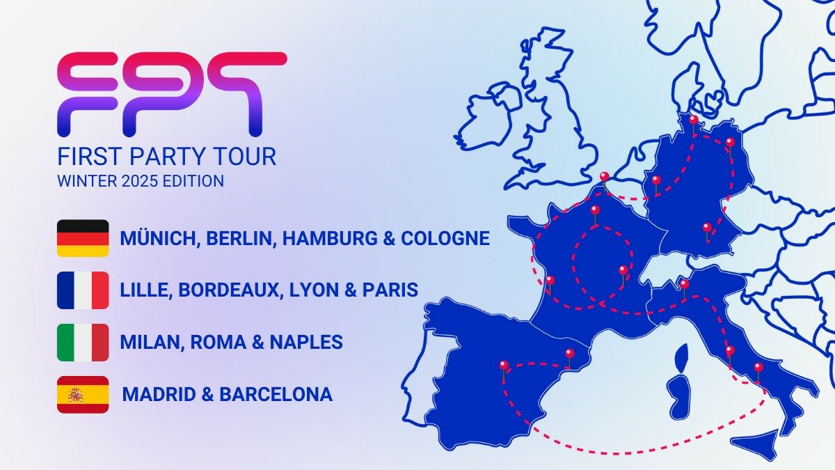La troisième édition du First Party Tour s’est achevée après une tournée intense à travers l’Allemagne, la France, l’Italie et l’Espagne. Cet événement, pensé pour accompagner les annonceurs dans leur transition vers un monde sans cookies tiers, a rassemblé plus de 300 participants autour de discussions stratégiques et d’analyses concrètes sur l’avenir de la donnée et l’optimisation média.
